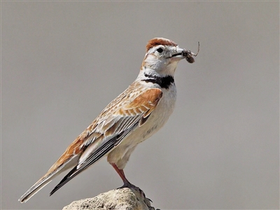 百灵俗称百灵鸟或沙百灵(如图),也称为蒙古鹨,产于中国内蒙古广大地区,属国家二级保护野生动物。百灵、画眉、绣眼、靛颏作为我国的四大名鸟,是人们最喜欢的笼鸟之一,它们的歌声婉转动听,被称为“草原上的歌唱家”,也是草原蝗虫的天敌,深受草原人民喜爱。