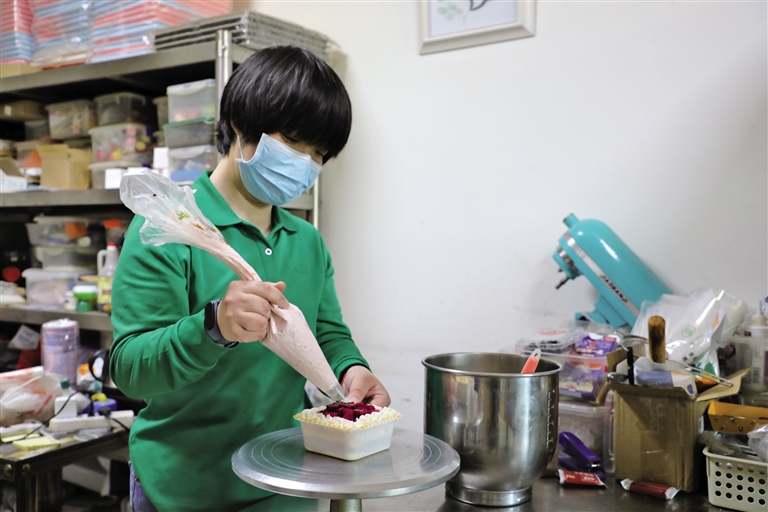刘溪娟是智力二级残疾,读到小学五年级便休学了。“平时在家也没什么事情,直到无意间看到天爱烘焙的招聘信息,我才第一次走出家门。”刘溪娟告诉记者,起初也担心被拒绝,没想到老师很快接纳了她。这是她的第一份工作,每天工作两小时,每月有600多元的收入。