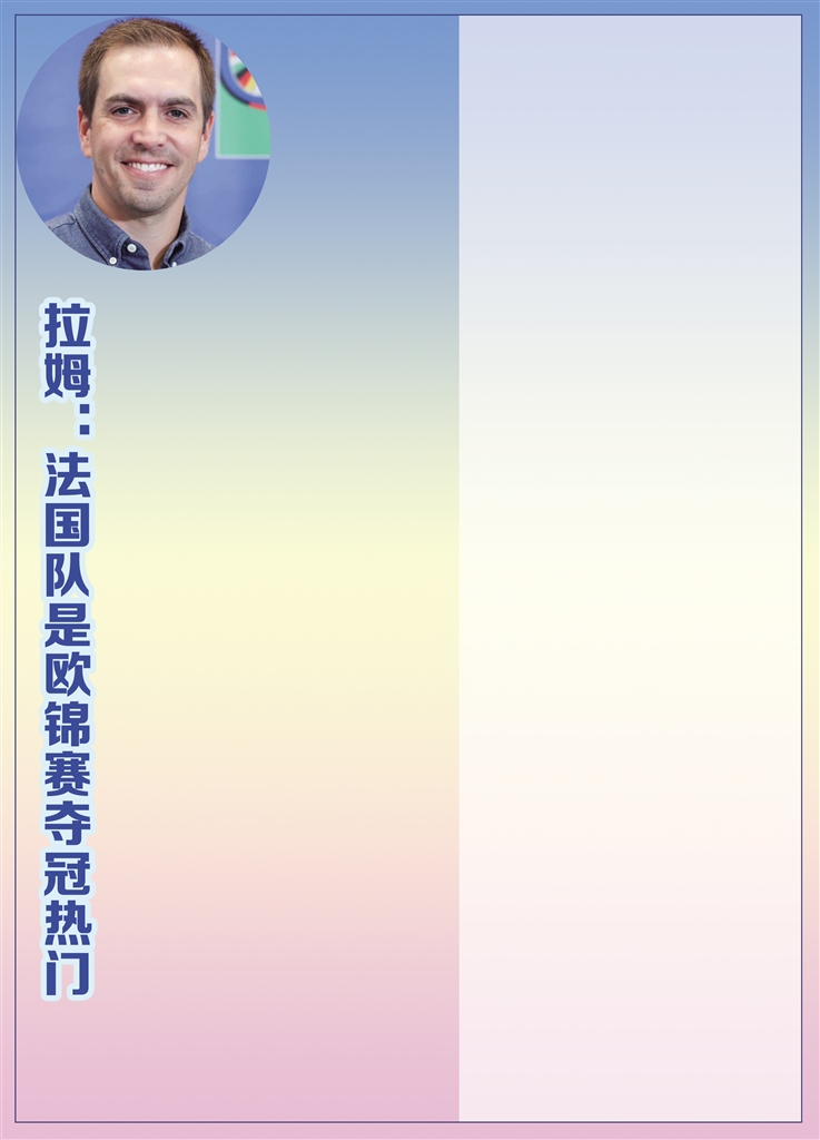 本届欧锦赛将于6月14日~7月14日在德国10个城市举办。拉姆毫不掩饰对法国足球的赞赏和看好,表示法国队是本届赛事最大夺冠热门球队。