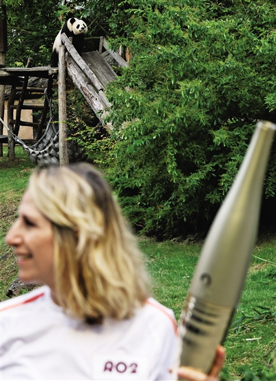 这有趣的一幕发生在7月8日的奥运火炬传递过程中。当日,奥运火炬在卢瓦尔-谢尔省传递,第一站就来到颇有名气的博瓦勒野生动物园。这里是法国第一座也是唯一一座拥有大熊猫的动物园,2012年大熊猫“欢欢”和“圆仔”来到这里,翻开中法大熊猫合作的新篇章。