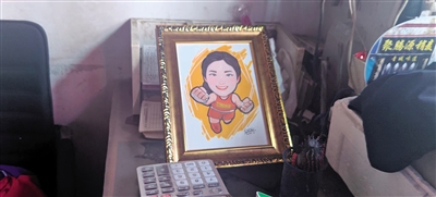 随着欢迎仪式结束,如潮水般的人群散去,蔬菜店恢复了往日的宁静,夫妻俩又开始忙着理菜、卖菜。不同的是,这个有些昏暗的小店,收银台旁的桌子上,多了一幅记录李倩奥运逐梦的漫画肖像,那是李倩刚刚进店看望爸妈时,留给老两口的礼物。