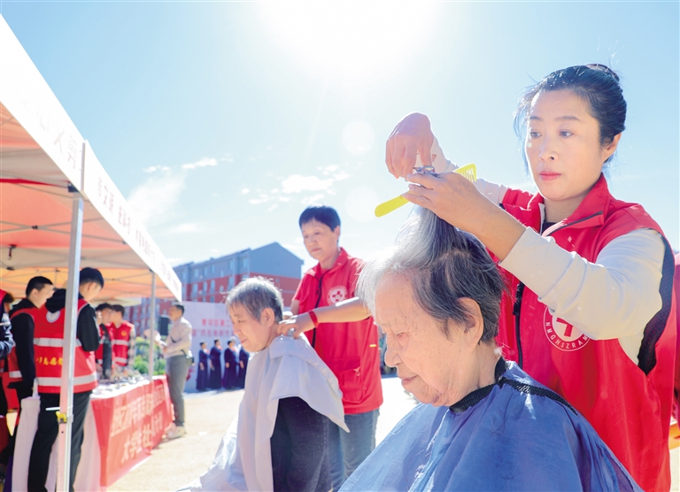 9月10日,呼和浩特市赛罕区第二届社区邻里节暨“我在新时代文明实践中心迎中秋”活动在人民路街道居家社区养老服务中心前广场举行,为社区居民送来义诊、小家电维修、免费理发等暖心服务,还组织了手绘团圆扇、套圈等趣味活动,大家一同快乐迎中秋。 摄影/草原云·北方新报首席记者 牛天甲 记者 孙 慧