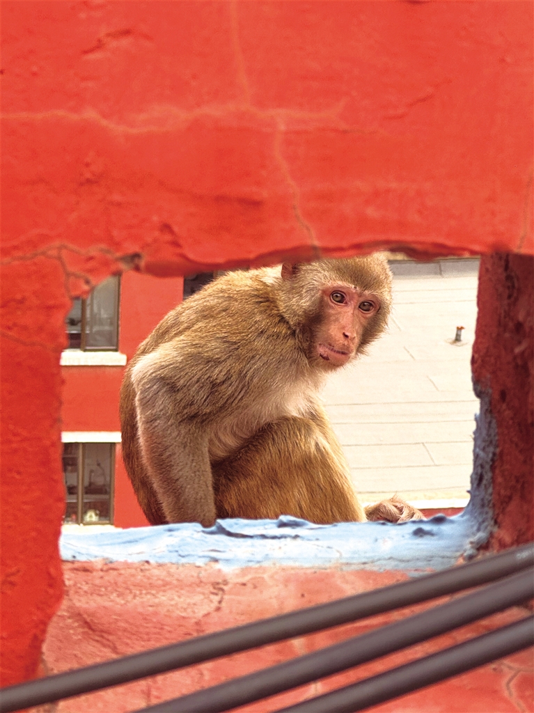 济隆小区居民刘先生说:“从上周五就发现窗外有只猴子,在我们小区高层飞檐走壁,看着好危险,大家尝试了好多种方法引导它下去都无济于事。”