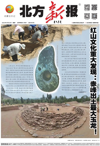 9月22日,中华文明的璀璨星辰——“红山文化”命名70周年研讨会在赤峰市召开。内蒙古自治区文物考古研究院研究馆员党郁在研讨会上发布:在赤峰市敖汉旗下洼镇八旗村北1.5公里处新发现的敖汉旗元宝山积石冢遗址,出土一件长15.8厘米、宽9.5厘米、厚3厘米的玉龙,是红山文化百年考古发现的体量最大的玉龙。