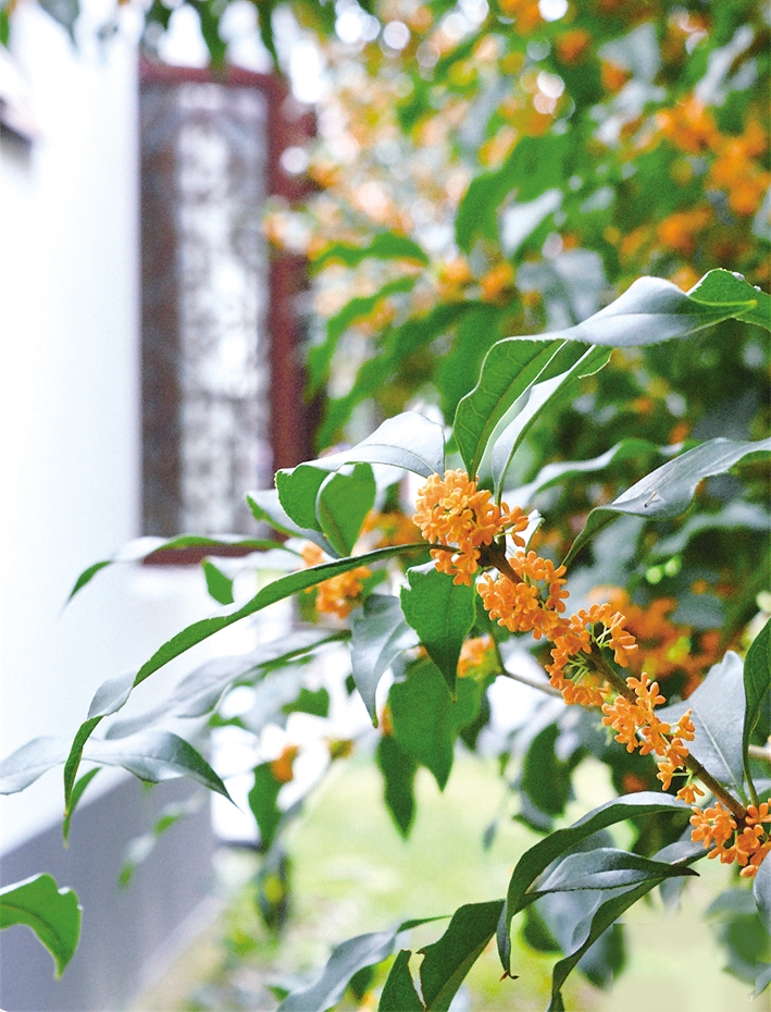 秋分又是农历八月的节气。犹如其他的月份或都可用一种花香或叶色来称道,在农历八月中迎来的是醉眼迷心的桂花香。星星点点的桂花,从白色到黄色再到橘红色,花色变化与沁人心脾的清香溢出相伴,真是“谁遣秋风开此花,天香来自玉皇家”。
