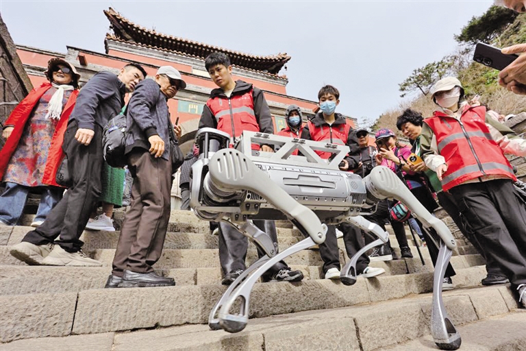 “我们结合目前科技发展的最新成果,借鉴外地景区的先进经验,最终选定引进机器狗在泰山景区开展垃圾清运测试,以此提高景区货物、垃圾运输效率。”马玉飞说。