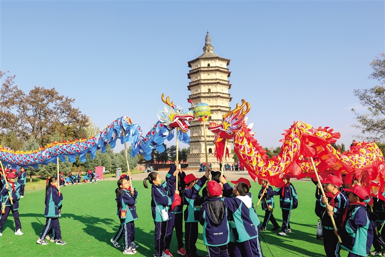 10月24日,丰州故城博物馆开展了“遇见白塔 穿越千年”主题活动,呼和浩特市实验中学东河校区近600名学生在白塔下舞龙、投壶、搭建玲珑塔,在互动中学习和传承中华优秀传统文化。据了解,截至目前,丰州故城博物馆今年已接待游客53642人次,较2023年同期增加近2倍。博物馆举办主题鲜明、内容丰富的社会教育活动30余场,受众人数达8000人,其中未成年人占比高达50%。摄影/草原云·北方新报首席记者 牛天甲