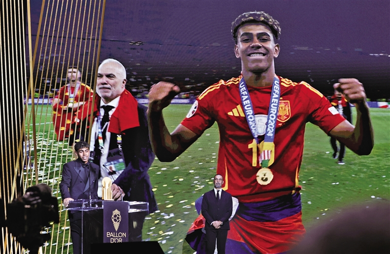 由于遭遇了右膝十字韧带撕裂的重伤,罗德里拄拐来到颁奖仪式现场,并发表获奖感言。“首先我要感谢世界上对我最重要的人,就是我的女朋友劳拉,今天是我们的纪念日。其次,曼城是世界上最好的足球俱乐部。这个奖项,是西班牙足球的胜利,绝非属于我一人。”罗德里还表示,亚马尔将很快赢得金球奖,他对此深信不疑。