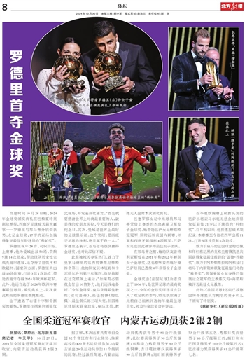罗德里现年28岁,司职中场。上赛季,他为曼城出战50场,贡献9球14次助攻,帮助球队历史性完成英超四连冠,还夺得了世俱杯和欧超杯。国家队方面,罗德里共出战13场比赛,打进3球1次助攻,帮助西班牙夺得2024年欧洲杯冠军。此外,他还当选了2024年欧洲杯赛事最佳球员。颁奖典礼上,首次获此殊荣的罗德里难掩激动。