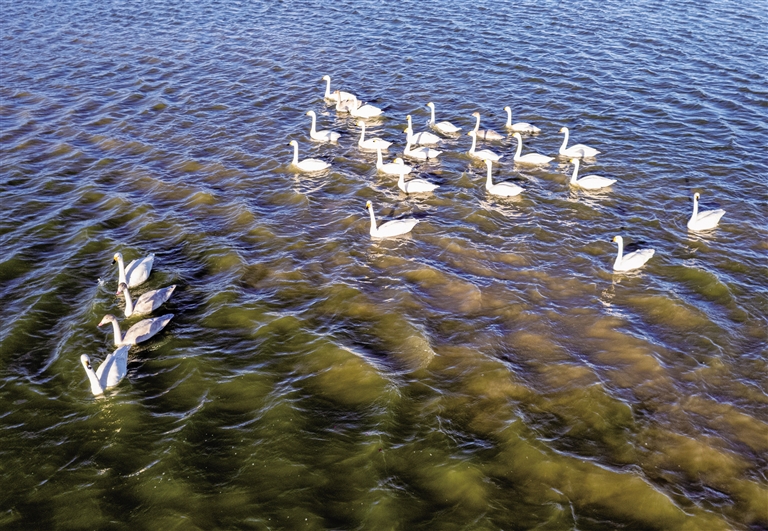 11月3日,在呼和浩特市大黑河河道及海流水库城区区域,大批迁徙的候鸟在这里休憩与嬉戏。随着呼和浩特市生态环境的日益改善,越来越多的野生动物选择这里作为栖息之地。摄影/草原云·北方新报首席记者 牛天甲