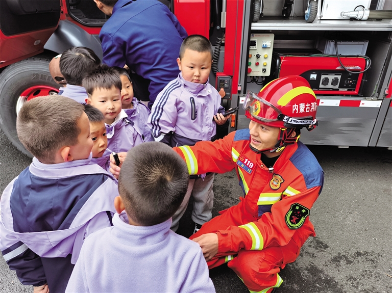 在大召消防救援站,一群可爱的小朋友在老师和家长的带领下,玩起了彩泥和模型拼装游戏。一个个用彩泥塑造的消防员形象跃然纸上,灭火器、水带、消火栓……孩子们用他们灵巧的小手捏出一个个心中的消防形象,他们还把精美清新的“小花束”送给现场的“蓝朋友”。在家长和老师的帮助下,两辆消防车模型也拼装好了,孩子们拉直、收起云梯,玩得不亦乐乎。