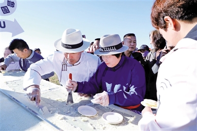 当日的活动现场,空气中弥漫着浓郁的奶香味,大家簇拥在奶皮周围品尝。“奶皮细腻香甜,放进嘴里就化了,简直就是来自大草原的奶油冰淇淋。”一位外地游客一边品尝奶皮一边分享着自己的感受。