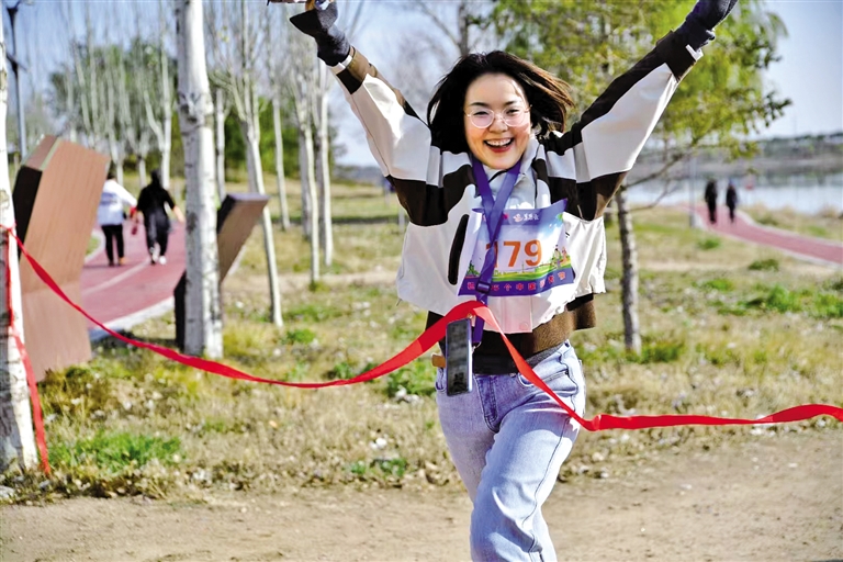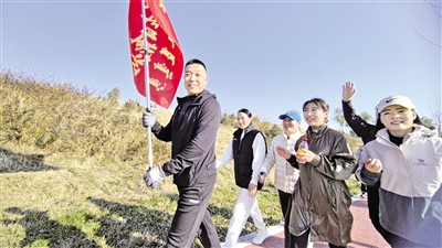 秋高气爽,大黑河郊野公园芦苇摇摆,野果飘香,新闻工作者们精神饱满地行走在健身步道上,边走边畅聊工作生活中的趣事。
