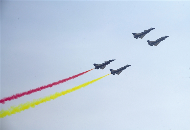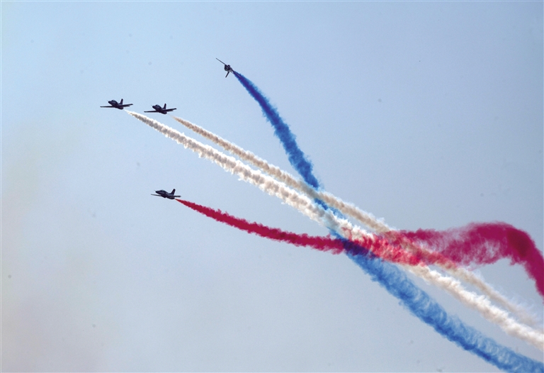 开幕当天,歼-20、歼-35A和俄罗斯苏-57三型第五代战机炫舞蓝天。俄罗斯“勇士”飞行表演队阔别8年重返中国航展。首次参展的人民海军,彩虹-9、彩虹-7等先进无人机和红旗-19地空导弹武器系统等武器装备“刷爆”热搜。