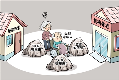 业内人士认为,当前,失能老年人居家养老、机构养老出现各种各样问题,关键在于3个难题。