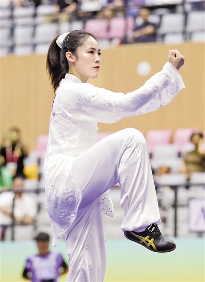 在民族武术赛场上,杜昊滢以一套刚柔并济的太极拳得到9.38分,获得女子传统其他类拳一等奖;马晶晶、马文博配合默契,携手获得女子对练三等奖。
