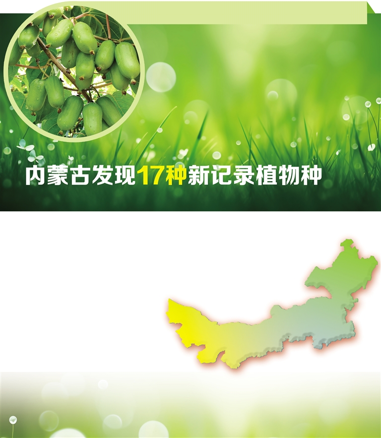 经植物分类专家鉴定,17种新记录植物种中,11种为自治区新记录植物种,分别为赤峰市境内发现的北京忍冬、软枣猕猴桃、旗杆芥、石胡荽、俯垂臭草、五叶黄精、鹿药、单花韭、反折鼠尾草,兴安盟境内发现的糠稷,通辽市境内发现的粗壮阴地蕨;6种为盟市新记录植物种,分别为赤峰市境内发现的脱皮榆、高山唐松草、零余虎耳草、京黄芩,鄂尔多斯市境内发现的玉竹、刺酸模。
