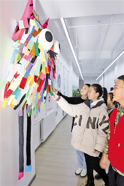 “这是排练室,这些道具是我们和小朋友一起动手制作的……”内蒙古新思路文化艺术培训中心作为儿童音乐剧《十二生肖“斗天狗”》的创排方,工作人员胡亚敏带领小记者们参观中心的文化墙和排练厅,浏览历年来优秀剧目和演出的精彩瞬间,让大家感受浓厚的艺术氛围,近距离触摸观赏演出道具,对儿童剧有更直观认识。