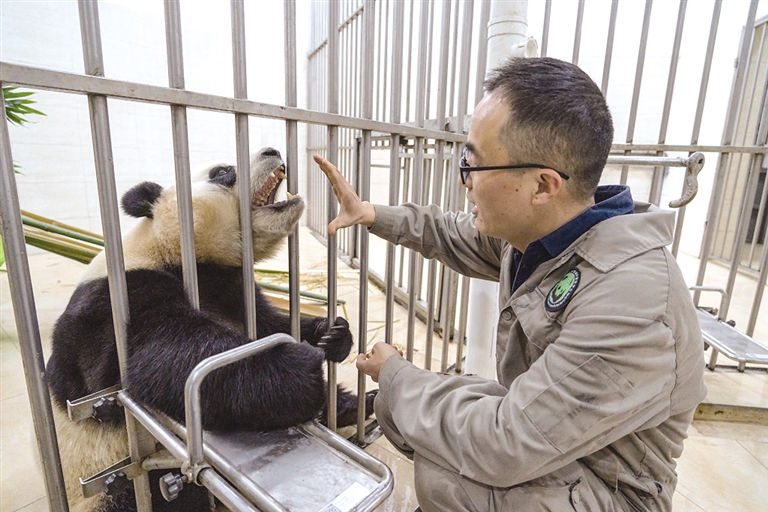 在大熊猫专家陪同下,记者分别在3日晚间和4日上午两次近距离观察“福宝”。据介绍,它的食欲、进食量、粪便次数和颜色均正常,对饲养员的指令也能做出及时回应,它的这些表现与往常无异。