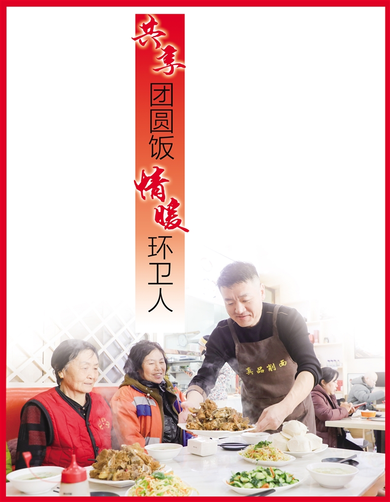 环卫工李大姐对记者说:“我干了这么多年环卫工作,虽然辛苦,但看到城市干净整洁,心里就高兴。今年能和大家一起吃顿团圆饭,很感动,就像在家一样……”