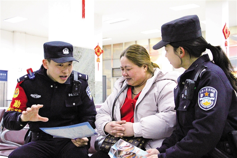 一张拜师仪式的照片定格了这对师徒的起点。今年27岁的师傅李达群从警2年,先后在派出所客运执勤、线路工作和内治消业务等岗位锻炼,之后转为综合内勤。而徒弟胡杰是2024年刚参加工作的新民警,面对从警后的第一个春运,她充满好奇与期待。为了让新民警更快融入到春运安保工作中,派出所特意安排她与年龄相仿的李达群结成师徒对子,年龄相差2岁的师徒亦师亦友,共同守护着旅客平安出行路。