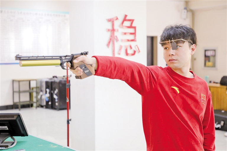 为了打出更稳定的表现,队员们每天保持高强度训练。从8点开始,射击馆内便响起密集的枪声。队员们专注瞄准、扣动扳机,子弹一发接一发飞向靶心。中午短暂休息后,继续训练,直到下午5点30分。每天,队员们都要打出几百发子弹。