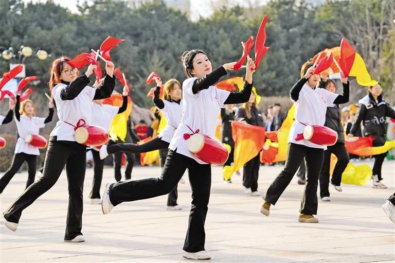 “咚咚锵!咚咚锵!”随着阵阵铿锵有力的锣鼓声响起,内蒙古鸿德文理学院的学生们共同舞动长龙……2月28日,该校举办了一场以“龙腾盛世 抬头迎春”为主题的活动,迎接3月1日农历二月初二“龙抬头”的到来。在活动现场,舞蹈、演奏、合唱等精彩纷呈的节目接连上演,学生们尽情释放多彩青春。