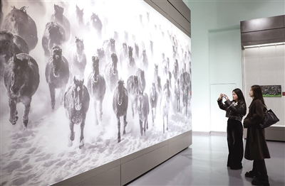 3月12日,呼和浩特市民欣赏蒙古马摄影作品。“驰骋北疆 赓续华章——‘群星璀璨’蒙古马精神主题摄影作品展”日前在内蒙古美术馆开展,展览共汇集了120幅摄影作品,以多元化的视角呈现“蒙古马精神”和内蒙古自治区各族人民坚韧不拔、勇往直前的精神风貌。