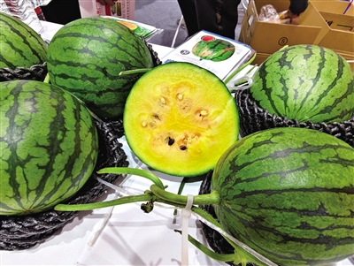 “你看这个彩虹瓜,中间是红色,两边是黄色,皮薄汁多,口感甜脆,是公司推出的新品种。”沈阳一家种业公司的负责人马先生正介绍着产品,除了彩虹瓜,草莓柿子、螺丝椒种子也很不错。