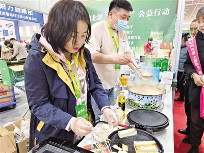 “欢迎品尝我们的羊杂,非常香!”在呼和浩特市一家食品厂展台前,参展商一边让大家品尝现煮的羊杂,一边介绍产品,吸引不少人驻足。