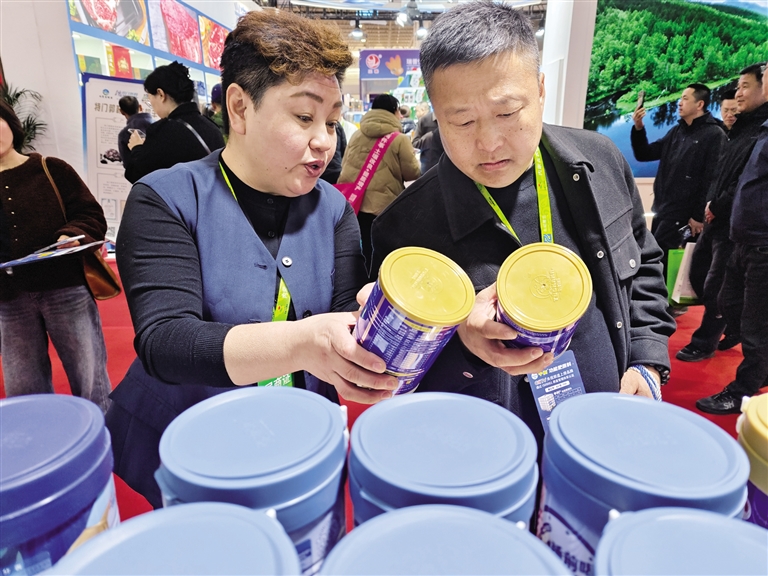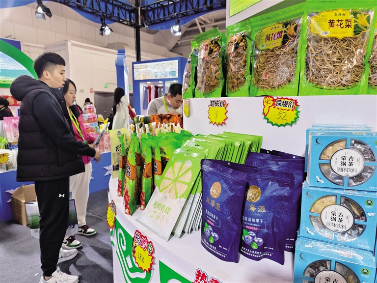 在现场,记者看到,来自内蒙古的优质农产品吸引着大家的目光,牛肉干、奶制品、小米等产品让人目不暇接。