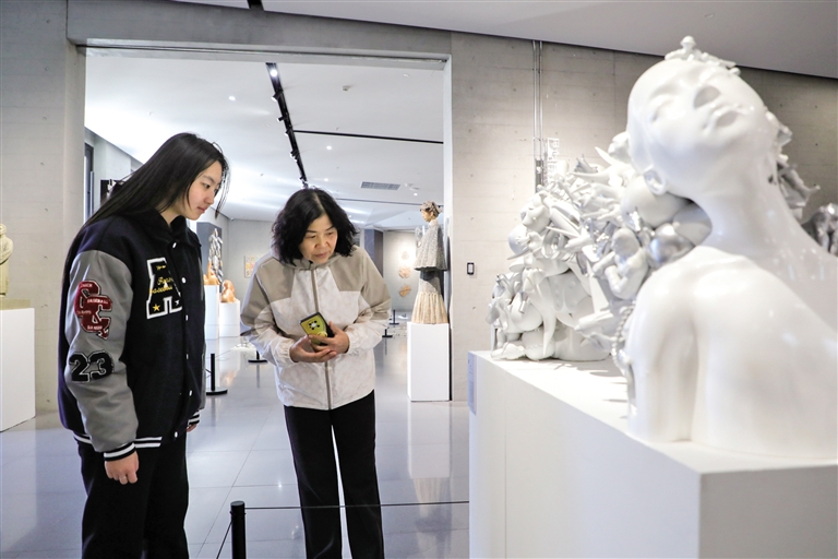 4月1日,呼和浩特市民正在观赏雕塑作品。据了解,“青城之星”第二届呼和浩特全国大学生优秀雕塑作品展于3月29日在呼和浩特雕塑艺术馆开展。本次展览共征集到来自中国美术学院、中央美术学院等全国60多所艺术院校600多位青年雕塑家的作品,最终遴选出108件优秀作品参展。此次展出的部分作品巧妙运用声、光、影像等表现手法,拓展了雕塑的形态边界,充分展示出青年雕塑家的艺术追求和创新精神。展览将持续到5月25日。