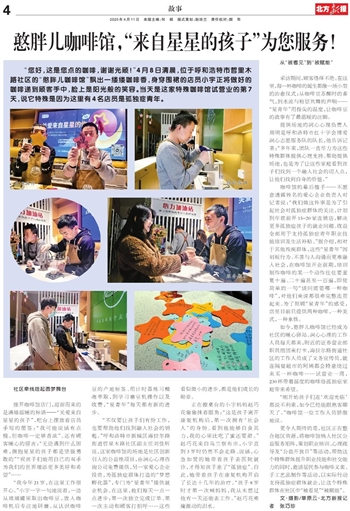 如今,憨胖儿咖啡馆已经成为社区的暖心驿站。润心心理的工作人员每天都来,附近的证券营业部职员组团来打卡,海拉尔路街道社区的工作人员成了义务宣传员,就连隔壁超市的阿姨都会特意绕过来买一杯咖啡……试营业一周,230杯带着温度的咖啡给孤独症家庭带来希望。