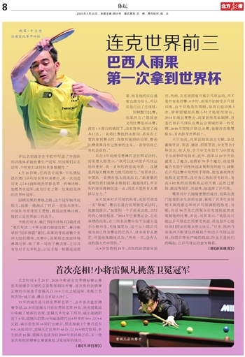 哪里有什么随随便便的成功。雨果在澳门取得职业生涯的突破,展现了其多年来坚韧不拔的意志和对乒乓球满腔的热爱。当晚,有近50万名巴西观众在电视机前熬夜观看他的比赛。对此,雨果表示:“我很高兴能让乒乓球在巴西更受欢迎,我也很开心能给我们国家的观众带去快乐。”日本、欧洲乃至美洲不断冒出的极具个性的乒乓球运动员,给国乒带来严峻的挑战,但也正是他们的崛起,让乒乓球运动愈发精彩。