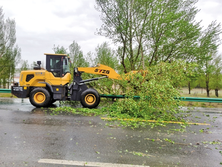 记者了解到,强降雨导致S104线(武川段)K45+600处路面积水,K46+700处路两侧行道树被大风刮断,其他路段出现落石等情况。中心第四公路服务所快速组织市交通集团蒙晟公司使用机械清理。公路养护人员冒雨作业,利用装载机等设备清理塌方泥沙,人工疏通排水沟渠,并在危险路段设置警示标志,保障公路安全畅通。中心还加强与气象、交警等部门的联动,及时发布路况信息,引导民众合理出行。对易积水、临崖路段加强监测,确保行车安全。目前降雨仍在持续,市公路服务中心将密切关注天气变化,加大巡查力度,备足应急物资,做到“发现一处、处置一处”,坚决防范次生灾害发生。