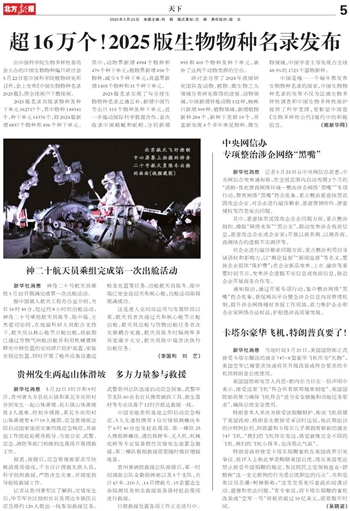 2025版名录共收录物种及种下单元162717个,其中物种148341个,种下单元14376个,较2024版新增6857个物种和496个种下单元。其中,动物界新增4994个物种和470个种下单元;植物界新增458个物种,减少5个种下单元;真菌界新增1405个物种和31个种下单元。