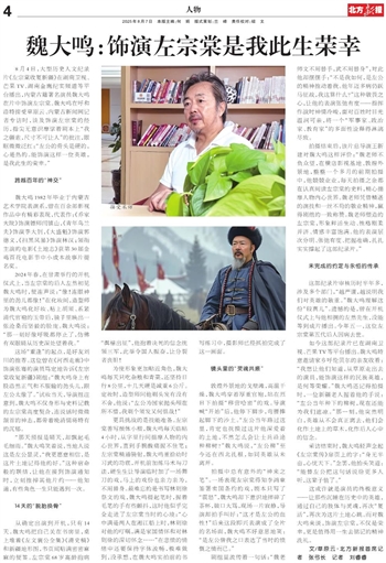 如今这部纪录片已在湖南卫视、芒果TV等平台播出。魏大鸣特意邀请家乡呼伦贝尔的亲友收看:“我想让他们知道,从草原走出去的演员,能饰演这样的民族英雄,是何等荣耀。”魏大鸣还记得拍摄时,一位新疆老人握着他的手说:“左公当年种下的柳树,现在还能为我们遮凉。”那一刻,他突然明白,英雄从不会真正离去,他们会化作土地上的草木,化作后人心中的信念。