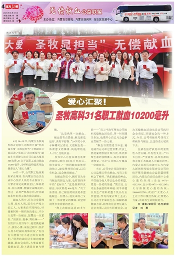爱心汇聚!圣牧高科31名职工献血10200毫升