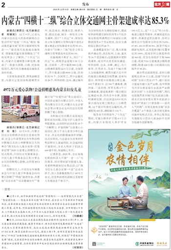 内蒙古“四横十二纵”综合立体交通网主骨架建成率达85.3%