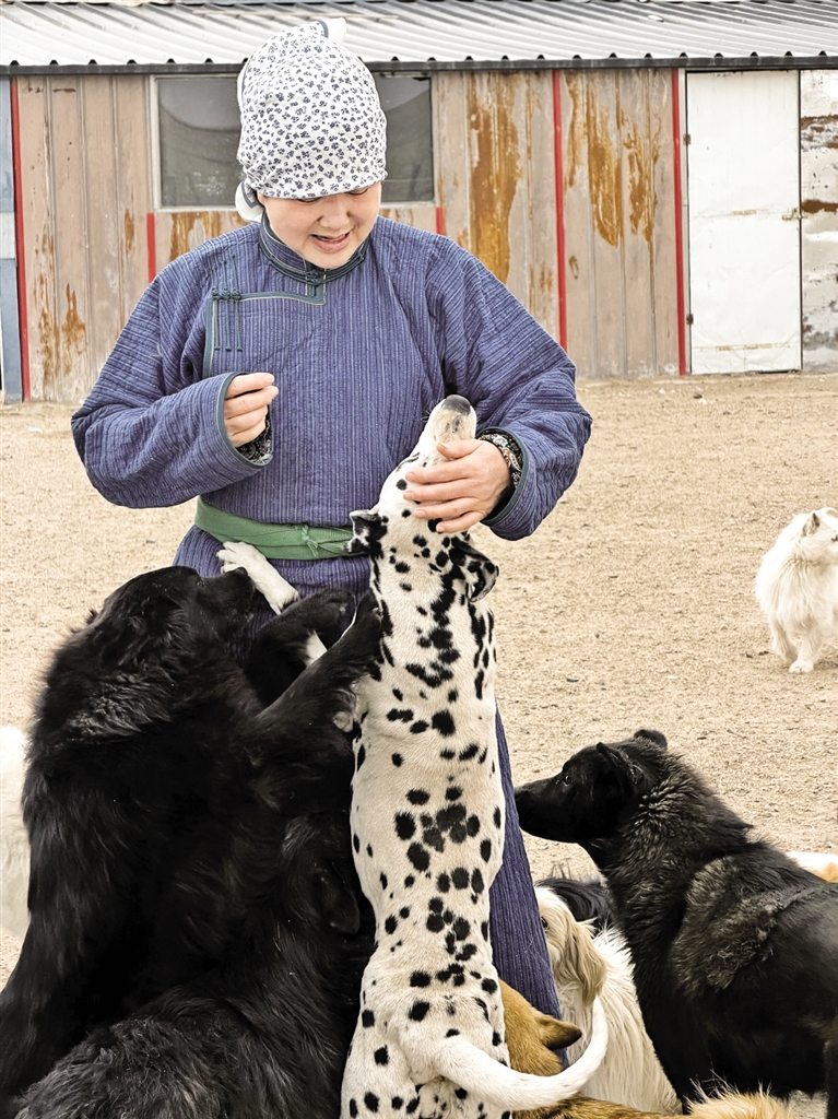 从不会生火做饭,到仅凭一张小纸片就能熟练点燃牛粪、羊粪炉子,三年蒙古包岁月,让她的身体饱受湿寒侵袭,手脚变形,严重时甚至需要拄着双拐行走,可她从未有过一丝放弃的念头。“有了这个蒙古包,‘毛孩子’们就有了避风遮雨的家,再苦都值得”,简单的话语,藏着最坚定的温柔。