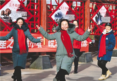 1月27日,锡林浩特市民在核心价值观广场跳起广场舞。当日,虽然室外温度降至零下20摄氏度,但广场舞爱好者们依然相约而至,顶着寒风跳起舞。