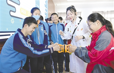 3月23日,同学们体验马德堡半球实验,了解大气压强。当日,呼和浩特市第二十七中学联合内蒙古科技馆在该校举行科普活动,全校1000多名学生在亲眼所见、亲手操作、亲身体验中体会到科学的神奇。近年来,该中学举办了一系列形式多样、内容丰富的校园科技活动,促进了学生科学素养和实践能力的全面提升。 本报记者 王磊 摄