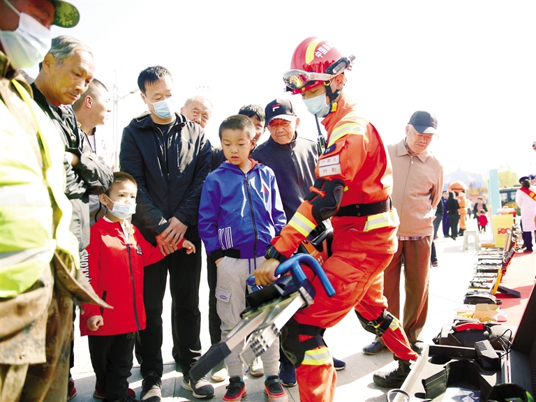 5月3日,在呼和浩特市阿尔泰游乐园,森林消防员正在向市民宣传防火常识。自小长假以来,2000多名森林消防员组成的60多支防火执勤分队深入我区60余处景区、人流密集场所开展防火宣传。 本报记者
