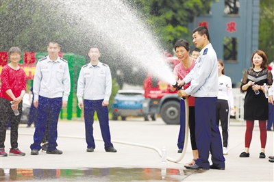 5月9日,在厦门市同安区消防救援大队,消防员叶佳礼指导母亲叶美芳体验水枪出水“灭火”。当日是母亲节,福建省厦门市同安区消防救援大队开展“感恩母亲 情暖消防”主题活动,邀请消防员的母亲走进消防队,参观宿舍食堂、体验消防器材装备、观摩消防技能展示,并一起包饺子、做饭等,让母亲们度过一个难忘的节日。新华社发