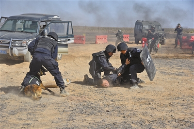 为增强口岸地区各处突职能部门之间协同配合、区域联动和快速反应的能力,近日,阿拉善额济纳边境管理大队主办处突应急演练,检验应急机制,提高处置水平。本报记者 宋爽 摄