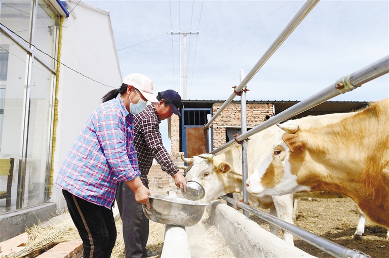 种着地、养着牛、绣着花,房子宽敞明亮,四轮车摩托车置办齐全,孩子们大学毕业,老人颐养天年,如今,孟兰一家的日子过得有滋有味。