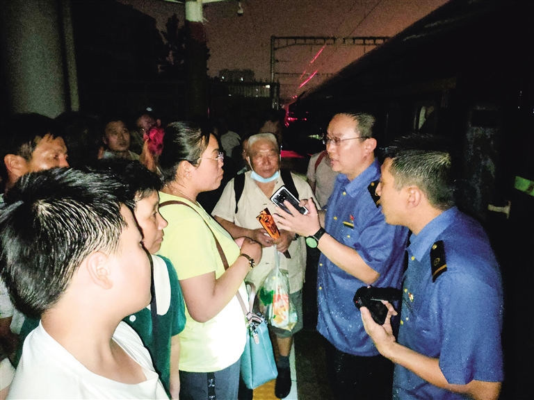 列车工作人员向旅客解释情况,做好安抚工作。高颜 摄