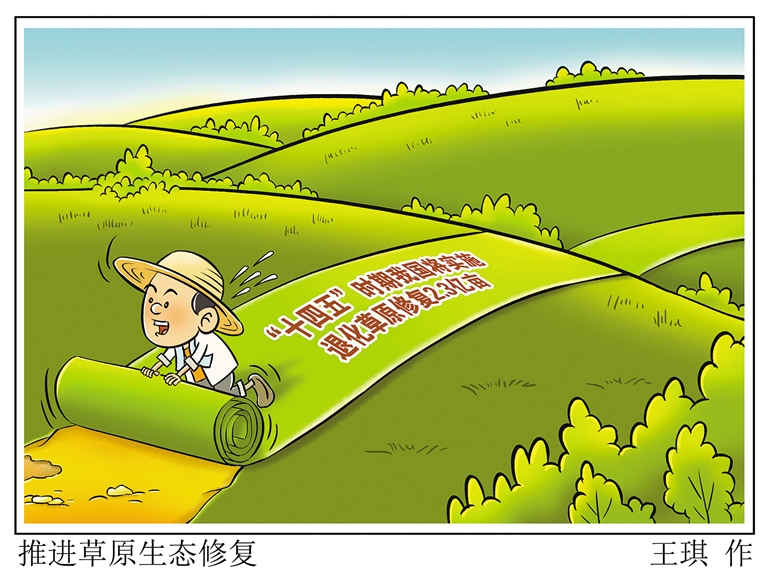 近日,国家林草局草原管理司司长唐芳林表示,“十四五”时期,我国将加快推进草原生态修复,实施退化草原修复2.3亿亩,提高草原生态系统的质量和稳定性。文/新华社 图/王琪
