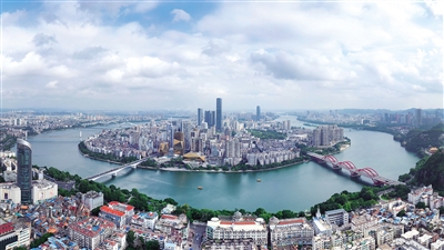 9月4日,在广西柳州,水上公交船在柳江上行进(无人机照片)。随着广西柳州主汛期进入尾声,9月3日,柳江水域上的19个水上公交码头全面复航。据了解,每年主汛期来临,柳江上的部分水上公交码头停航避洪,汛期过后开始陆续复航。水上公交船在柳江上行驶,与沿岸的景观相互映衬,构成一幅幅靓丽的城市风情画卷。 新华社发