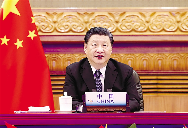 习近平指出,当前,新冠肺炎疫情仍在全球肆虐,世界经济复苏艰难曲折,国际秩序演变深刻复杂。面对挑战,金砖国家要展现担当,为世界和平与发展作出积极贡献,推动构建人类命运共同体。